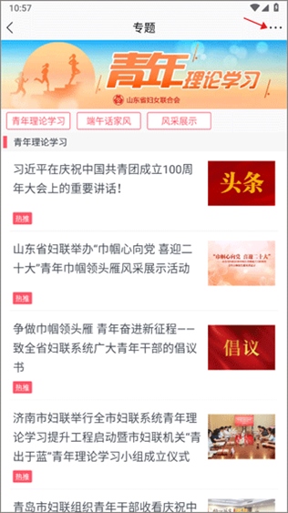 3、进入专题后可以看到相关的多篇文章,点击右上角的三个横点图标。