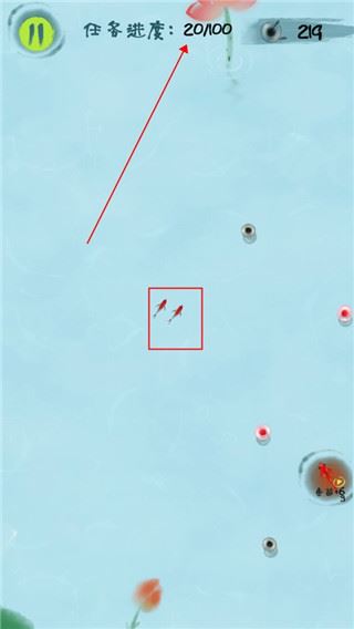 1、通过灵活操作,躲避所有的危险,成功保护自己的蝌蚪。
